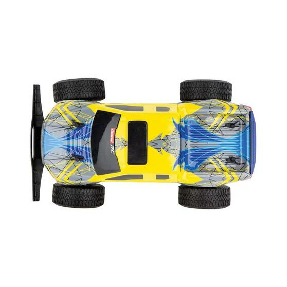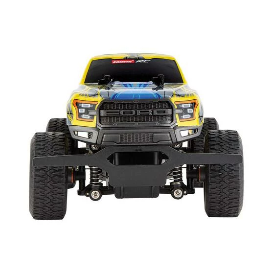 It’s lights out and away we go with the Carrera Remote Control Ford Raptor F150 Truck! This beast has unbelievable power, perfect for tearing up any kind of terrain. Race this beast through the backyard, over gravel or dirt, or on the track or road! It’s built for the hobbyists and the serious racers, ready to tear up some rubber for whatever adventure or trial you put it through, reaching epic speeds of up to 25km/h. It features digital proportional driving and steering for the ultimate precision, front and rear suspension for when the bumps get a bit much, a long-life rechargeable battery for more race time, high-quality metal internal gears for durability, and a lightweight racing body to keep your truck faster than the rest. To top it all off, it comes with a lightning-fast USB charging cable, as well as a controller that’s the perfect shape to fit your hand grip. You’ll feel like you’ve entered the Jurassic period with this monster—it’s ready to take on everything you throw at it. Happy racing!